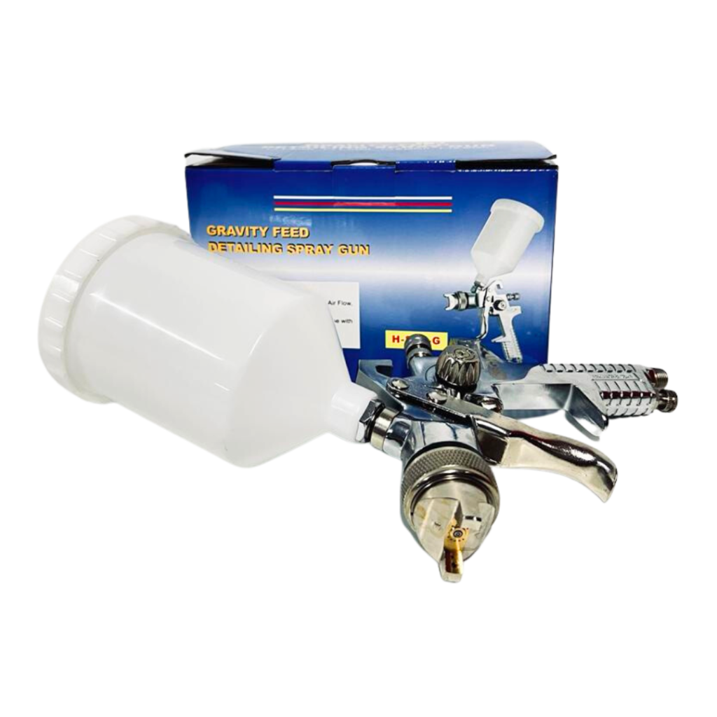Spraygun GM H827 Gravity Feed de alto rendimiento, diseñada para ofrecer una cobertura uniforme y precisa, maximizando la eficiencia del repintado automotriz. Acero inoxidable. Ideal para reducir los costos de operación